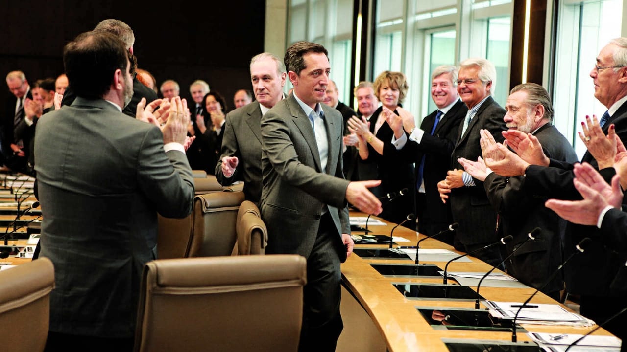 مدیرعامل تازه منصوب شده یک بانک سرمایه گذاری غول پیکر اروپایی کار می کند تا وقتی یک شرکت صندوق پرچین آمریکایی سعی در خرید شرکت خود دارد ، قدرت خود را حفظ کند.