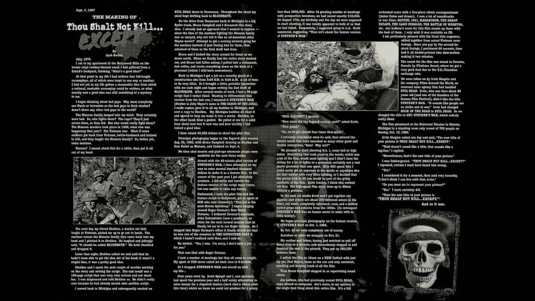 تو نباید بکشی... بجز (1985) یک فیلم فعالیت هیجان انگیز و جذاب است. سبک فیلم و فعالیت از نوع فیلم های فعالیت هنگ کنگ مربوط به قسمت آخر دهه 1980 است. صحنه های اولیه به من کمک کرد تا مقدمه ویتنام را در The Exterminator (1980) به خاطر بسپارم. چهار تفنگدار دریایی در فیلم Thou Shalt Not Kill... Except Vigilante اثر ویلیام لوستیگ (1981) مانند خدمه اوباش عمل می کنند. بیست دقیقه آخر به خانه ادامه دهید در منطقه چپ شناور شوید. سام ریمی به طور موثر در نقش رئیس دسته کار می کند. به گونه ای که تصاویر متحرک هوشیار را مسخره می کند، احیا می شود.