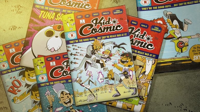 داستان انیمیشن Kid Cosmic از آن جایی آغاز میشود که پسرکی جوان، همواره در تخیلات خود دوست دارد که به یک سوپر قهرمان تبدیل شود. اتفاقاتی عجیبی رخ میدهد و به نظر می رسد که در اثر سنگهای کیهانی، قدرتهایی به این پسر بچه اهدا شده و او میتواند .....پسر جوانی که آرزو دارد ابرقهرمان شود ، به نظر می رسد در اثر سنگهای کیهانی آرزویش به حقیقت پیوسته است...